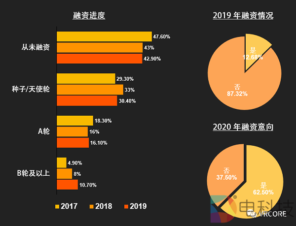 融资方面,2019 年依然有少量内容团队获得了资本青睐,获得融资的团队主要集中在种子/天使轮;整体来看,团队融资情况的整体格局变化不大;从趋势来看,内容团队获得融资的几率将越来越小,但内容团队在 2020 年依然有积极的融资意向。