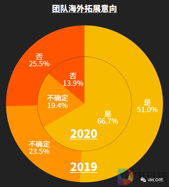5G、线下大空间等都在 2019 年给内容开发团队提供了更多的选择与机会。在 2020 年面对疫情的情况下,则可能会对开发团队带来不同的影响,未来市场变数较大。