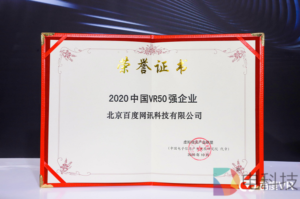 (10月19日,2020世界VR产业大会,百度在大会上被评为“2020中国VR50强企业”)