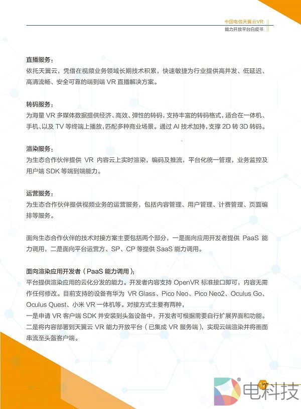 附「中国电信天翼云VR能力开放平台白皮书」: