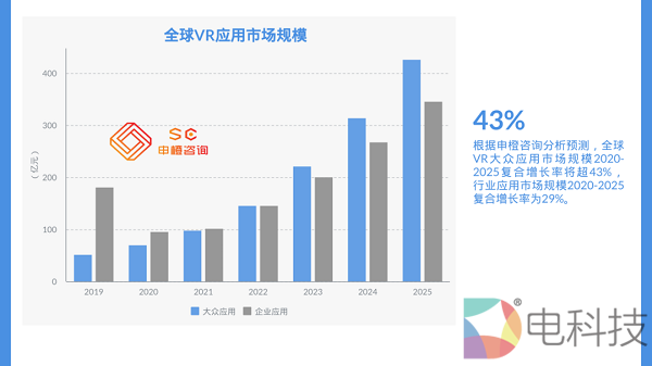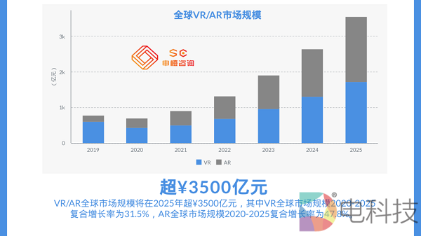 申橙咨询预测,全球VR/AR市场规模将在2025年超¥3500亿元。