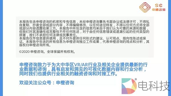 其中,VR头显市场规模将超¥700亿元,2020年全球VR头显发货量将超400万台;VR其他硬件市场(非头戴式显示器)规模将超¥200亿元;VR应用市场(包括大众应用和行业应用)规模将超¥770亿元。