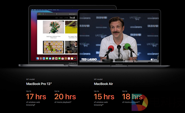 而M1的高性能低功耗带来最直观的体验就是MAC系列笔记本续航的提升。