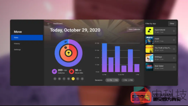 除了支持90Hz刷新率,该更新也推出了Oculus Move,这是一款适用于Quest和Quest 2的内置健身追踪器,其可兼容Oculus Quest平台旗下任意一款应用及游戏,同时该追踪器还能根据用户的运动量实时追踪所消耗的卡路里等健身指标数据。