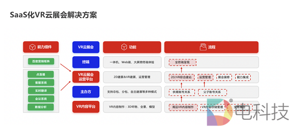 面对这些机遇与挑战,百度VR已经具备一套相对成熟的SaaS化VR云展会解决方案。该方案以百度VR技术自研为主、百度集团领先AI技术支持与生态协同共赢为辅助,从解决方案、产品矩阵、内容平台、技术能力到硬件支持的全链路、多维度生态闭环。特别是在“会展+VR”的典型落地场景中,SaaS化VR云展会解决方案可实现主办方、展商、内容服务商在同一个平台的有效联动,并通过提供采集、处理、存储、展示一体化VR内容制作SaaS化平台,进一步简化准备环节,降低VR内容制作成本;此外,百度VR云展会解决方案提供基于百度智能云提供的会展核心功能组件,并可结合百度营销矩阵,助力完成展前线上引流、展中传播、展后线索转化的闭环。