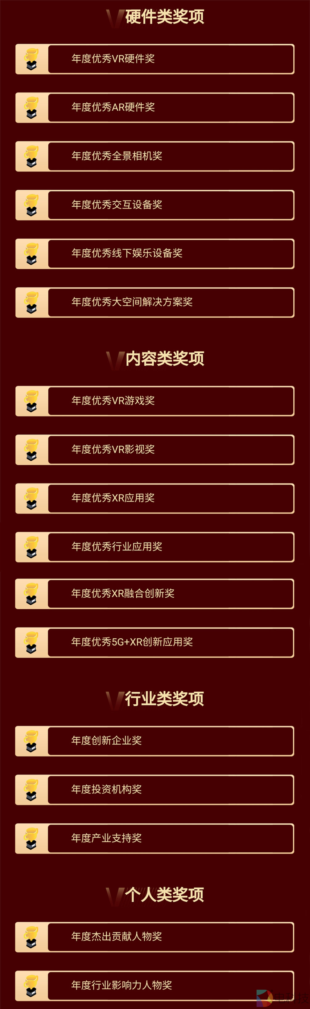 ▲2021虚拟与增强现实产业「金V奖」奖项设定