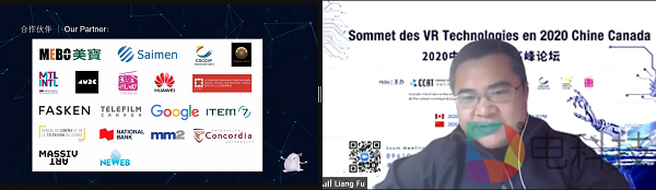 2020中加VR科技高峰论坛于蒙特利尔时间11月27日晚8:00 (北京时间11月28日早 9:00) 在蒙特利尔和北京两地同时线上举行。此次活动在zoom平台全程直播,同时在海内外两个特别平台进行同步直播。