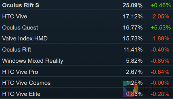 此外,从以上图表可以看出,Oculus头显的占有率已达到53%,这是自Valve在2月优化其Steam平台硬件调查数据以来,Oculus头显占有率首次突破50%。另外Valve为更方便统计Steam平台Quest使用数据,其将Quest&Quest 2归类为“Oculus Quest”,这使得Quest头显的占有率从11.24%跃升至16.77%,这是Oculus自2019年5月发布Rift S以来最大的月度涨幅。