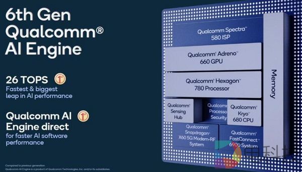 与这个第 6 代 AI 引擎配套的还有第 2 代高通传感器中枢,得益于专用的低功耗 AI 处理器,它能感知用户的情境,结合来自 5G、Wi-Fi 和蓝牙的新增数据,就能够做到屏幕唤醒、抬手亮屏、用户活动识别和语音事件检测等等功能。