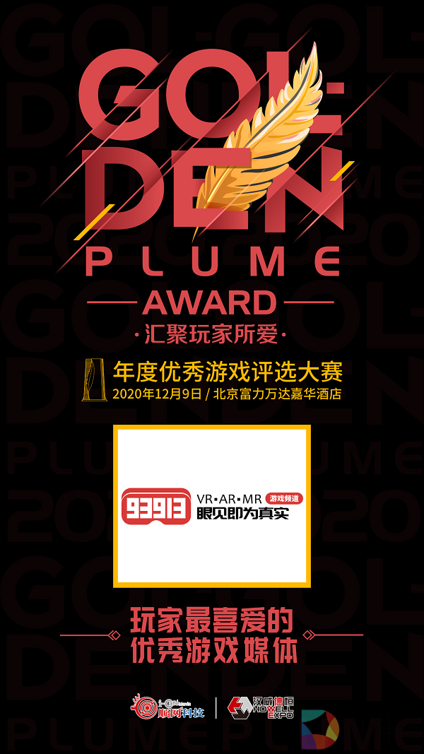 12月9日,2020「金翎奖——年度优秀游戏评选大赛」颁奖典礼在北京富力万达嘉华酒店隆重举办,93913虚拟现实网VR游戏频道荣获2020年「玩家最喜爱的优秀游戏媒体」奖。