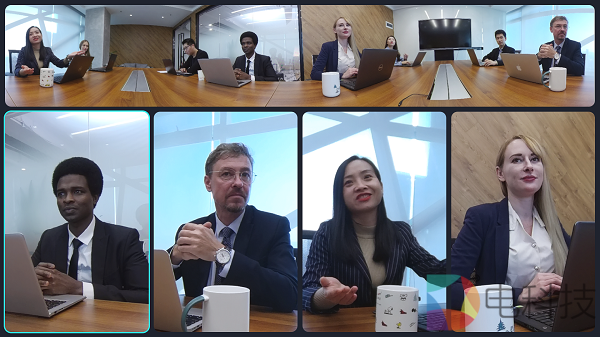 其中,讨论模式可让更多与会者出现在画面上,与远端充分讨论。演讲模式适用于有序的主题发言场合,让与会者专注聆听演讲者的发言。全局模式可将所有与会者接入画面当中,一览所有人的状态。自定义视角模式则是可自主选择视角予以锁定。