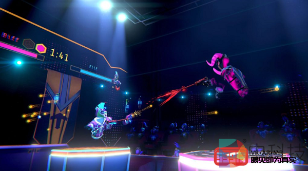 目前,「Blaston」支持Steam及Quest平台玩家跨平台游玩,在游戏中每名玩家将置身于一个高架平台,并通过操作一系列武器来消灭对方。在战斗中,玩家还可以不时挑选四周不断出现的各类科幻武器,并根据武器特性进行相关战术调整,同时玩家还需及时闪避对方攻击,从而避免自身受到伤害。值得一提的是,在双方对峙时,所有的武器射击特效都采用了慢动作机制,只要玩家的移速足够快就可以躲避对方的子弹。