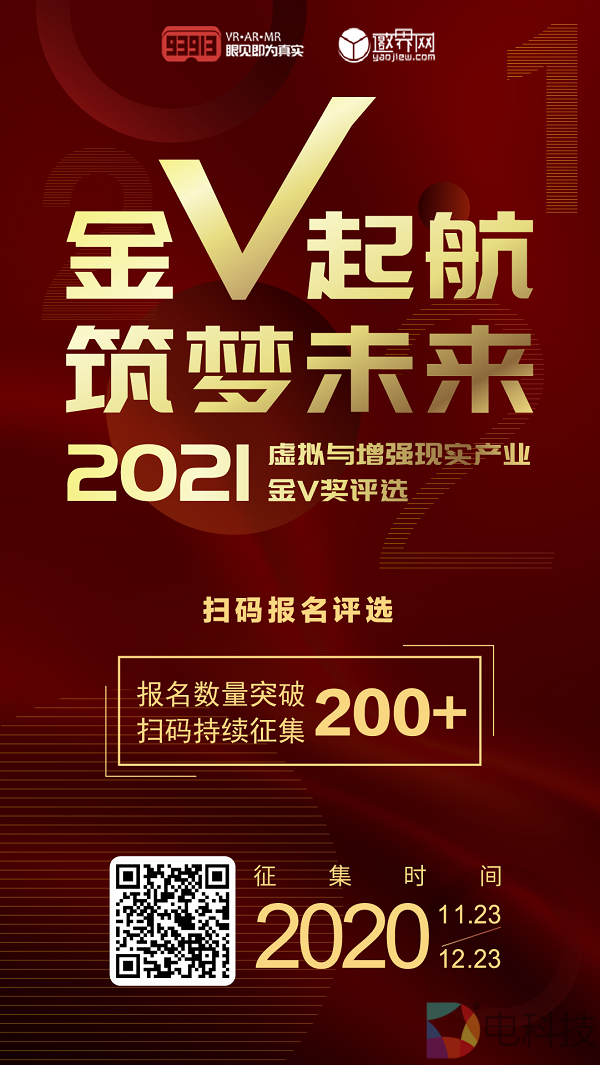金V启航,筑梦未来!欢迎业内优秀企业踊跃报名参选2021虚拟与增强现实产业「金V奖」,同时也让我们共同期待这场属于每一位在XR产业执着前行的梦想家的年度盛典。