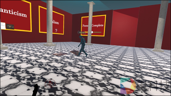 为了测试在VRChat平台上创建严肃游戏的挑战,我与一位具有艺术背景的研究生合作创建了一个非常简单的严肃游戏。艺术史专业的学生通常会通过复习艺术作品,了解这些艺术作品的特征来学习课程。「Art Sort」是一款益智游戏,玩家必须通过拾取散布在房间内的艺术品并将其归入特定类别来解决每个房间的谜题。整理完一个房间的所有艺术品后,便可以进入下一个房间。