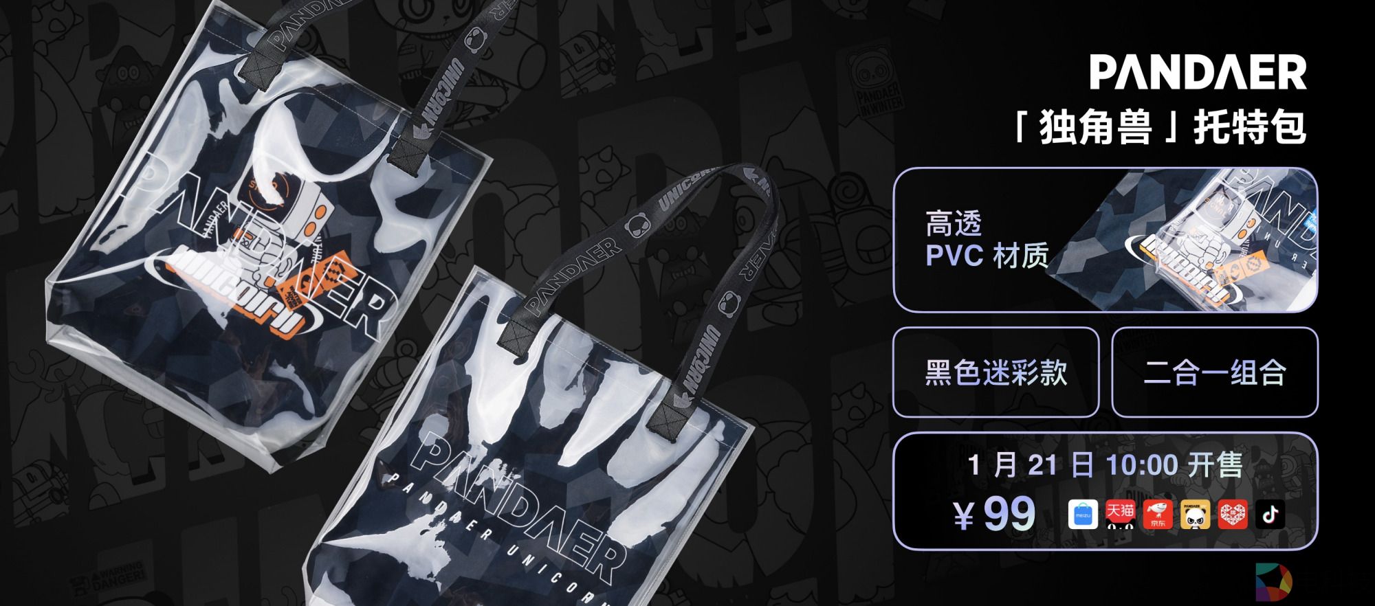在潮流服饰之外,魅族 PANDAER 生活研究所更为我们提供了一款出行装备——魅族 PANDAER 「独角兽」托特包,这款托特包是魅族 PANDAER 首次采用二合一设计语言,将迷彩布与 PVC 两种材料相组合,不仅设计美观,整体也坚固耐用。售价 99 元,于 1 月 21 日 10 点在魅族官方全平台开售。