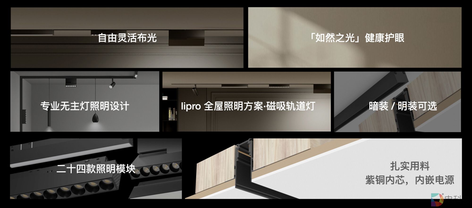 最值得一提的是, lipro 磁吸轨道灯有 8 种灯具,共 24 款选择,让各种场景都能自由灵活布光,真正地做到了「如然之光」与「照明设计」的有机结合。