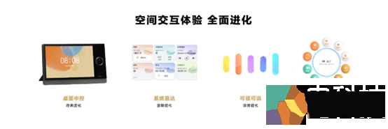 在交互距离方面,此次新添加的桌面中控屏,延续墙面中控屏的经典设计,结合桌面机身,完成了从墙面到桌面的距离进化,灵活摆放,可墙可桌,真正实现一空间一屏。同时,搭载了HarmonyOS的中控屏UX迎来重大升级,打造出独特的分层交互逻辑。一层为空间交互界面,首页的卡片可实现生活空间选择、场景触达、子系统入口和单品控制的分类收纳,空间全量掌控;二层为系统交互界面,针对子系统能力进行核心信息显示、重点功能快控的有效分类,方便用户按照意图高效筛选内容;三层为设备精细控制界面,用户可实现对设备进行参数、模式、信息可视的精细控制。