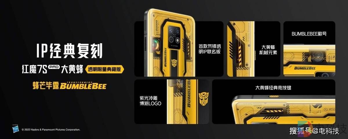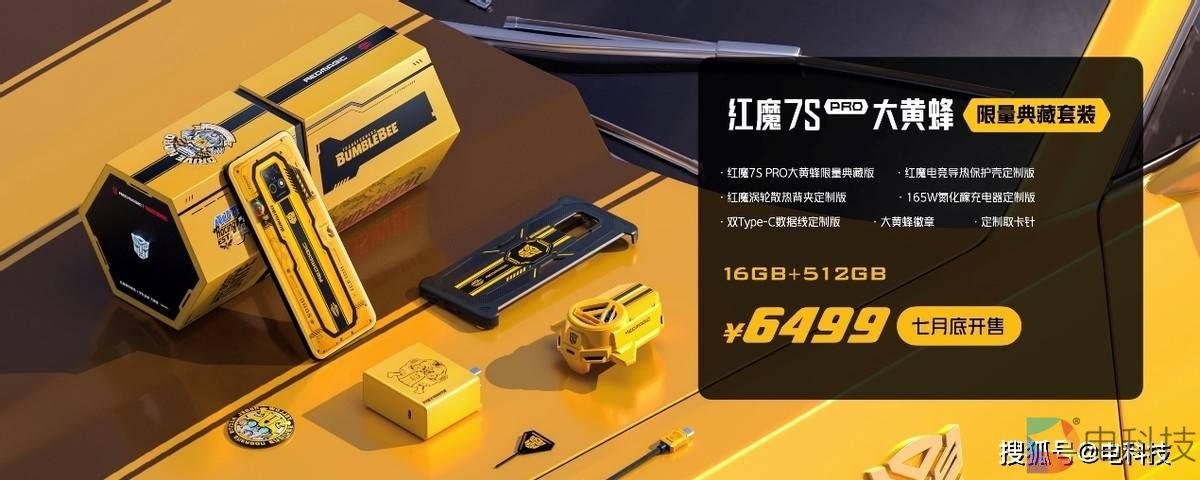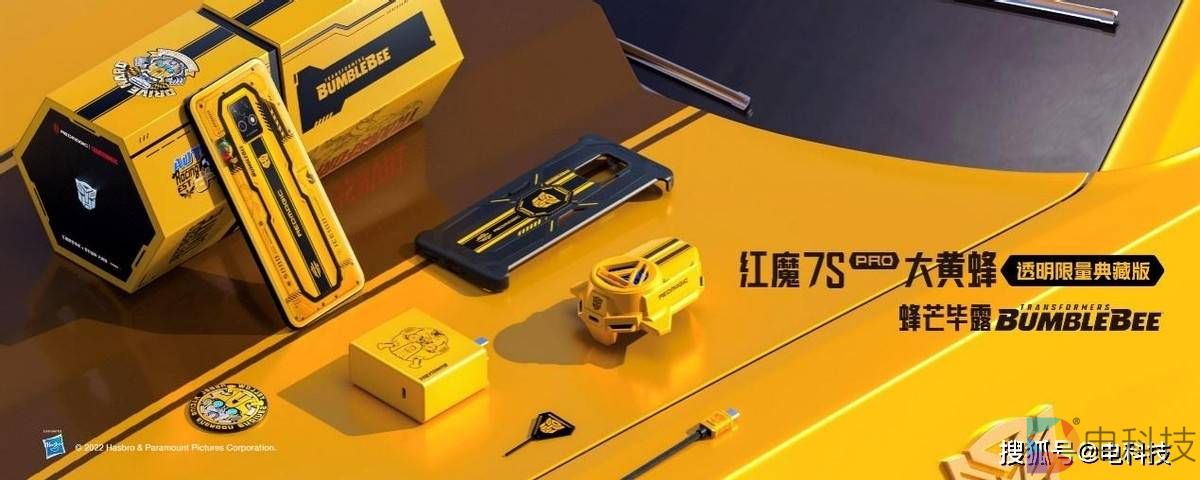 此外更惊喜的是,继上半年红魔推出变形金刚擎天柱与霸天虎信仰套装后,这一次备受铁粉期待的红魔7S Pro变形金刚大黄蜂限量典藏套装也“蜂芒毕露”,重磅登场!打开这套豪华的典藏六边形“蜂窝”礼盒,里面包含了内存配置为16+512GB的红魔7S Pro大黄蜂定制版,大黄蜂定制涡轮散热背夹、165W氮化镓充电器,以及导热保护壳等一整套细节感拉满的定制装备。红魔7S Pro大黄蜂定制版采用经典的黄色与红魔标志性的氘锋透明碰撞融合,采用紫光冷调等行业顶尖工艺,打造红魔首款氘锋透明IP联名版!机身内部包含了丰富的变形金刚机械元素以及大黄蜂特别设计的竞技键,对经典的致敬与用心覆盖到每一处细节,同时内置一套定制主题UI,由内至外呈现最耀眼的大黄蜂战斗姿态!
