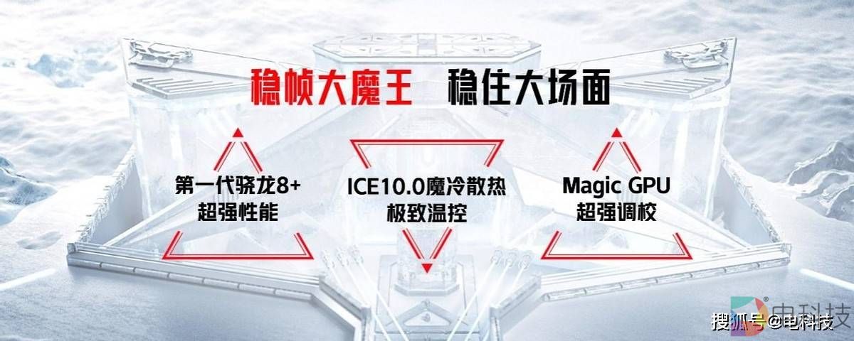 通过进一步与专业电竞选手以及更多玩家交流,红魔对于极致稳帧这一玩家需求痛点的洞察更加深刻,这也成为本次新品研发调校过程中的重要突破口,红魔力求通过巅峰性能、极致温控、超强的性能调度与优化实现持续稳定的高帧游戏表现。全新的红魔7S系列搭载第一代骁龙8+,ICE 10.0魔冷散热系统以及红魔Magic GPU自研稳帧引擎三大稳帧利器,为玩家带来满级稳帧体验!