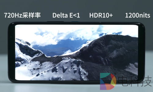 正面依然是熟悉的三星E4 165Hz超高刷屏幕,屏幕其他各方面参数都比较出色,什么720Hz采样率、HDR10+也是有的,它的色差表现也不错,Delta E < 1、亮度方面,最高激发亮度为1200nits。另外它还搭载了Pixelworks i6独显芯片,支持SDR转HDR。
