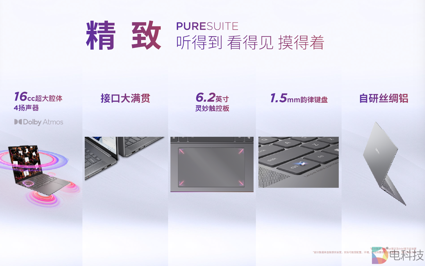 此外,YOGA Air 15还提供PURESUITE悦己体验,让精致听得见、看得见、摸得着。它采用16cc超大腔体4扬声器设计,支持杜比全景声,为用户提供更高品质的立体声效;1.5毫米的键程和准分子涂层,让用户打字时指尖能够更轻盈且拥有更好的使用手感;机身采用联想自研的丝绸铝材质,带给用户丝绸般的柔和触感。