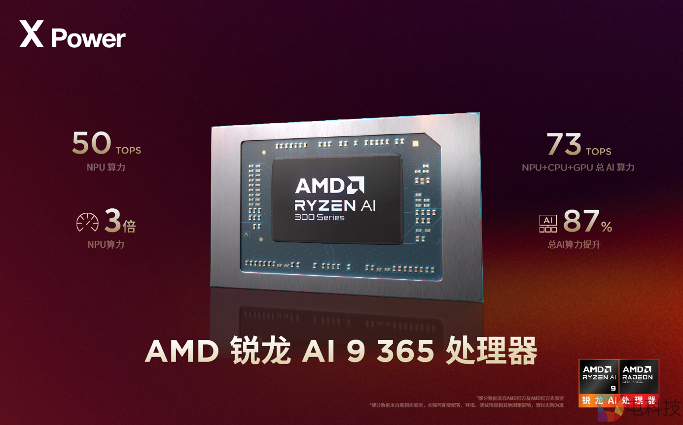 除了卓越的屏幕,YOGA Pro 14还实现了从性能到续航的强强联合。它搭载AMD锐龙AI 9 365处理器,这颗处理器采用全新的Zen 5架构内核,4纳米制程。单核最高主频达到5GHz,单核性能提升达114%。同时这颗新一代处理器内嵌神经网络处理单元,AI算力达到每秒50万亿次运算,比上一代提升了3倍。更关键的是,XDNA 3.5架构的新一代显卡,相较上一代780M显卡,同功耗下性能提升达19%。游戏性能提升更是至高达23%。得益于性能的飙升,YOGA Pro 14让创作变得更丝滑、更高效,视频渲染、导出速度提升了15.4%。同时,其内置的灵境引擎,针对100多款专业创作软件进行了专属调优,为创作者提供专业且有针对性的加速体验。