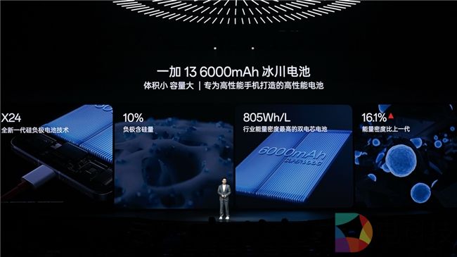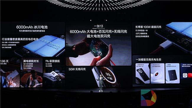 2024 年,一加以「冰川电池」开启了手机的长续航时代。一加 13 续航体验再进化,带来 6000mAh 超大容量「冰川电池」,DOU 续航达到 1.96 天,即使 1% 应急电量也可支持最长 13 小时超长待机。一加 13 冰川电池基于新一代球型硅碳以及蜂巢仿生结构打造,能量密度达到行业领先的 805Wh/L,这让一加 13 在拥有大电池容量的同时还能保证轻薄手感,同时得益于行业领先的电池工艺技术以及硅碳负极电池健康算法,一加 13 还实现了电池的久用耐用,使用寿命更长。