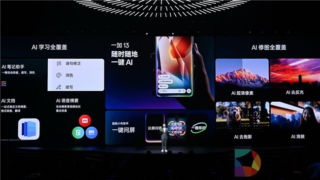 一加 13 搭载全新升级的全新小布助手,是行业最实用全场景 AI,在一键 AI 交互、AI 办公学习、AI 修图等多个场景全新升级,让 AI 真正实现从尝鲜到好用。一键 AI 支持在任何场景和界面下,通过长按电源键触发全新小布助手进行对话或文字交流,交互极简,智能高效。而在此前受到用户一致好评的AI修图功能也在一加 13 中得到升级,带来 AI 消除、AI 去反光、AI 去模糊以及 AI 画质四大核心功能,轻松拯救所有废片。同时针对办公学习场景,一加 13 也推出「AI 语音摘要」、「AI 文档」以及「AI 笔记助手」三大功能,轻松应对所有 AI 办公学习场景需求。