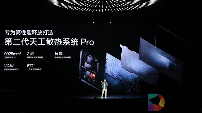 满血性能释放,需要强大的散热系统保驾护航。一加 13 搭载全新升级的第二代天工散热系统 Pro,拥有 9925mm2 超大散热面积,同时行业首发「双层 2K 超临界导热石墨」,导热系数行业领先,散热效率提升 124%。同时一加13中还首次落地了新一代 AI 自研温控算法,匹配 14 颗温度检测传感器,游戏温控精准度提升 50%,护航超 Pro 性能持久稳定释放。
