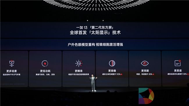 针对手机屏幕户外强光场景看不清等问题,一加 13 第二代东方屏全球首发「太阳显示」技术,可以根据不同的环境光强度来智能匹配显示效果,并根据环境色温精准还原色彩表现,有效提高户外场景下高亮度内容的可视性和可读性,强光照射屏幕内容也依旧清晰可见,一加 13 也获得了行业首个「德国莱茵 TÜV 智能护眼高可见性认证」。