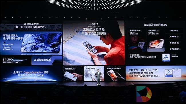 去年,一加 12 首发全球顶级2K东方屏,引领国产屏登上全球屏幕的珠穆朗玛峰。今年,一加再次携手京东方打造全球首个 DisplayMate A++ 认证屏幕,在屏幕素质、高亮显示、护眼能力、流畅触控四个维度全面升级,刷新了 21 项世界纪录。