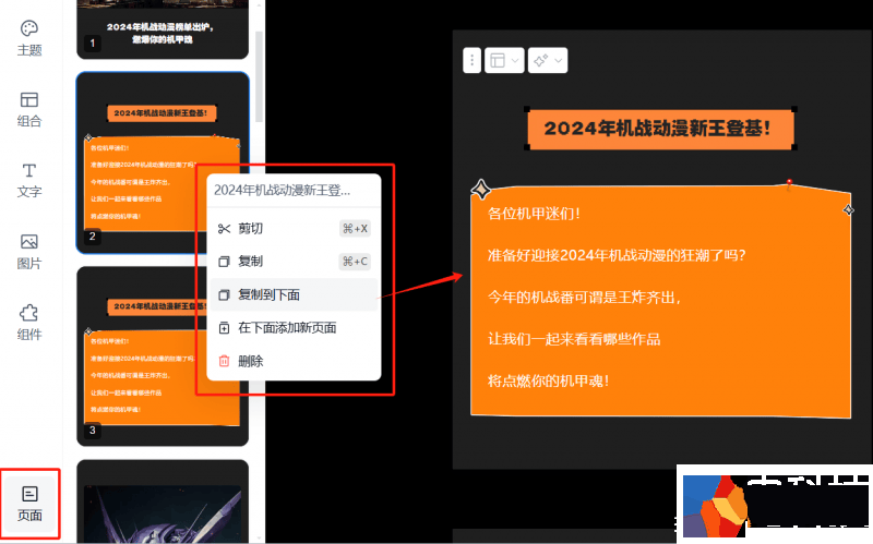 (2)页面:可复用单个页面的布局效果,提高创作效率。
