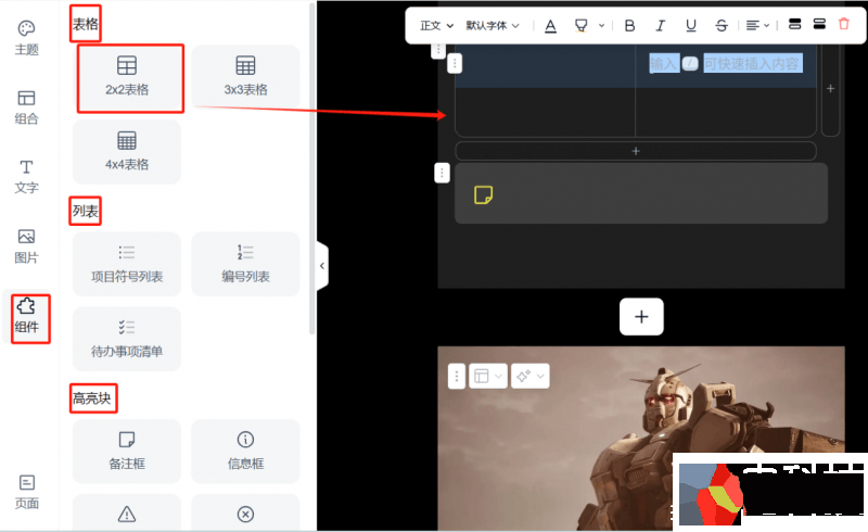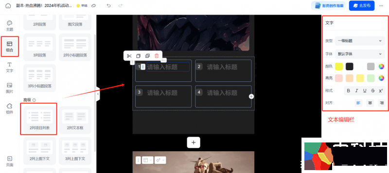 (6)组件:支持表格、列表、高亮块等功能性组件,增强彩页的实用性。