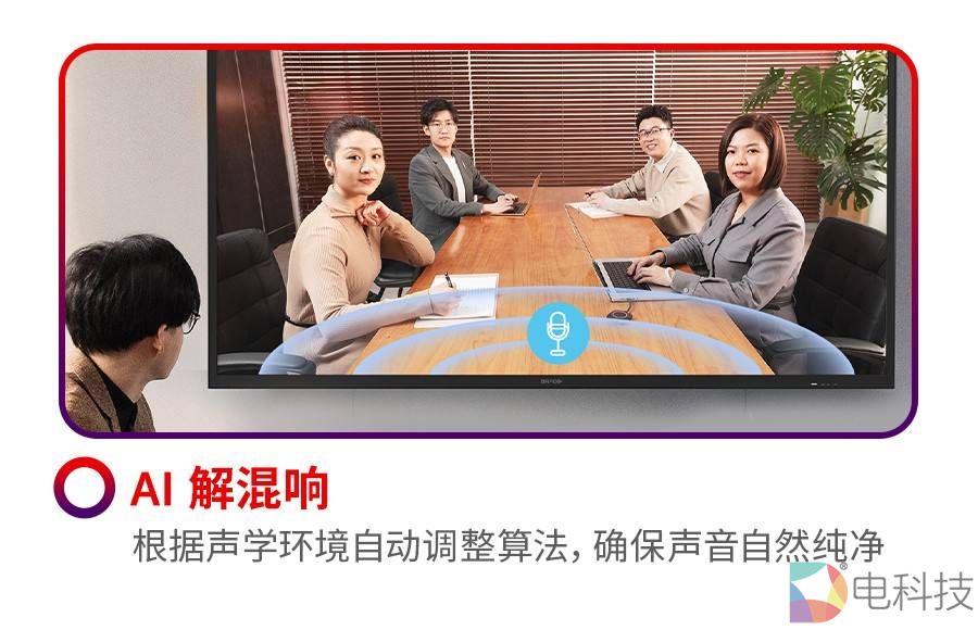 他介绍道,在视频会议中用户经常会遇到听不清、看不清的痛点。可立享无线会议屏正是针对这些痛点而专门设计的高度集成化产品方案。它集专业的音视频能力、显示效果与BYOM于一体。搭载16阵列波束成形麦克风,12米远距离拾音,具有单独的硬件加速能力,以AI深度神经网络算法加持,轻松应对远距离拾音、噪声、回声、混响等声学挑战。使远距离沟通如同面对面,即使在复杂的声学环境也能从容应对。
