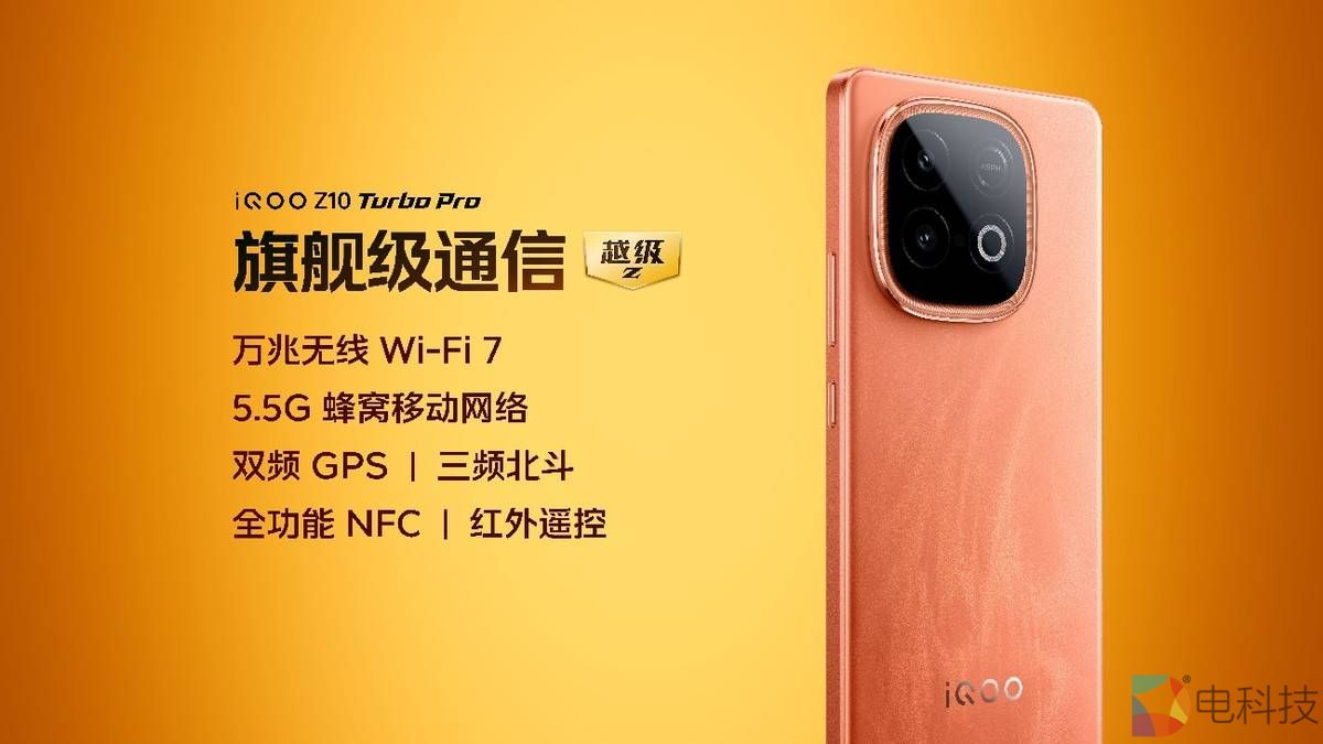 iQOO Z10 Turbo Pro 采用旗舰同款寰宇电竞信号系统,以 24 根环绕式天线带来“横握竖握随便握,信号始终都很稳”的表现,并联合《王者荣耀》首发“双网融合加速”,开启后游戏延迟最高改善达 70%。此外,Z10 Turbo Pro 还支持 Wi-Fi 7、5.5G、双频 GPS、全功能 NFC、红外遥控以及支持厘米级精准定位的蓝牙 6.0,通信能力亦是旗舰级。