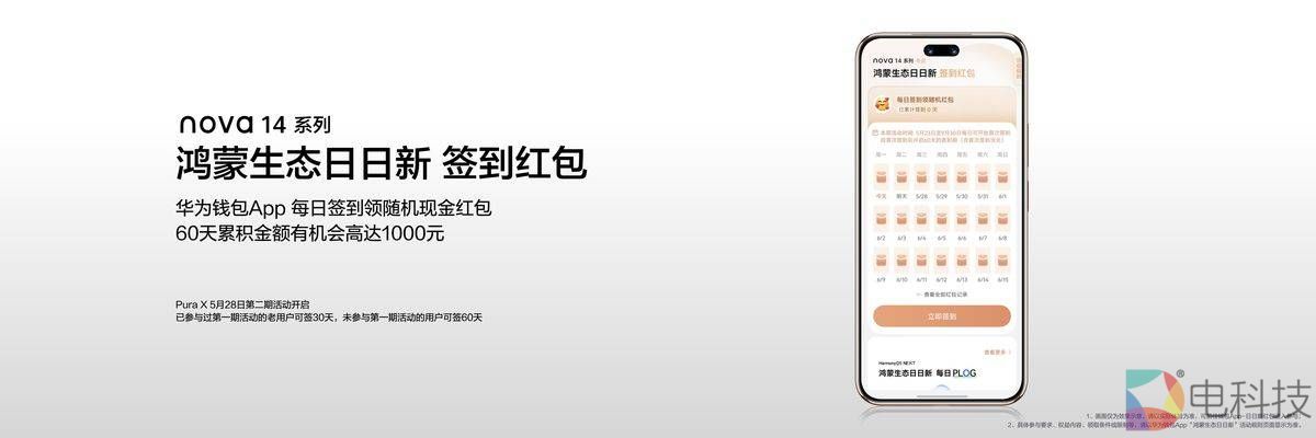 nova 14系列于2025年5月23日开售,nova 14起售价2699元,nova 14 Pro起售价3499元,nova 14 Ultra起售价4199元,购买nova 14系列产品可办理综合保障服务产品HUAWEI Care+,包含两年期和一年期两种选择。此外,5月23日起,nova 14 系列的用户可在华为钱包每日签到打卡,领随机红包,最高可以领60天!累计红包金额有机会高达1000元!