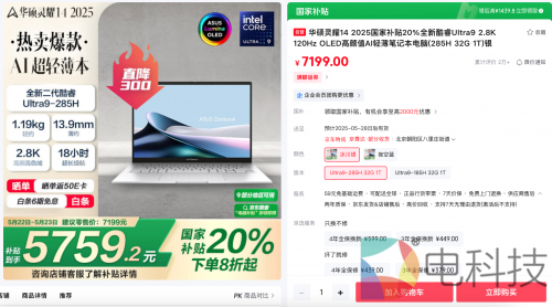 无论你是经常移动办公的职场精英,还是追求更高效创作节奏的内容创作者,华硕灵耀14 2025都能成为你可靠的AI伙伴。618大促正是入手好时机,购机直降300元,可享至高20%国家补贴、6期免息分期,到手仅5759.2元。感兴趣的朋友可上京东搜索#华硕灵耀14 2025#,查看更多618活动详情和更多产品细节。