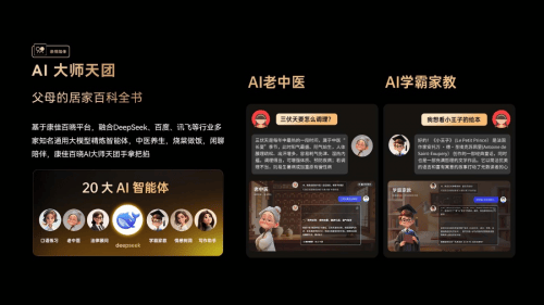 康佳易AI电视D7J系列的AI大师天团融合DeepSeek、百度、讯飞等行业多家通用大模型,为父母随时待命。老爸对摆弄花草上瘾,新买的兰花叶子有点发黄,他蹲在花盆前瞅了半天,对着电视问:“这兰花叶子黄了,是不是水浇多了?”D7J很快给出分析:“兰花叶子发黄可能是浇水多了,也可能是光照太足或者缺肥。”老爸听得连连点头,跟着提示给兰花换了个通风的角落,比自己瞎琢磨靠谱多了。