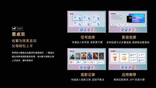 清晨,当第一缕阳光透过窗帘的缝隙,在地板上投下斑驳的光影,父母慢悠悠地起身洗漱。走进客厅时,顺手按下康佳易AI电视的电源键,屏幕亮起的瞬间,不是花里胡哨的复杂界面,而是那个贴心的全新自研易桌面。底端菜单栏上,“选择信号”“影音投屏”“观影记录”“应用推荐”四个常用功能像老朋友似的排着队,一眼就能瞅见。老爸想先看看早间新闻,不用翻菜单找直播入口,指尖在“选择信号”上轻轻一点,直接切换到机顶盒模式,熟悉的新闻频道立马跳出来,主播的声音清晰又亲切。