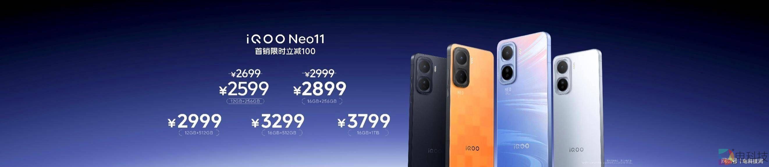 iQOO Neo11 共有 5 个版本可供选择,12GB+256GB 版本售价 2699 元(首销限时到手 2599 元);16GB+256GB 版本售价 2999 元(首销限时到手 2899 元);12GB+512GB 版本售价 2999 元;16GB+512GB 版本售价 3299 元;16GB+1TB 版本售价 3799 元,即刻下单,享更多权益。