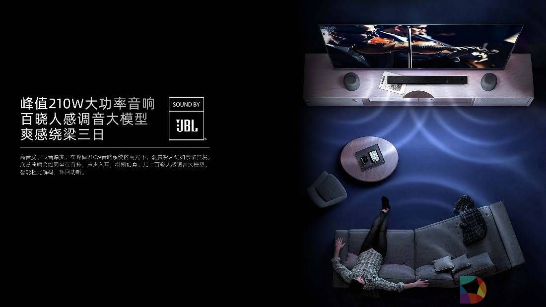 康佳R10观感系列针对上述痛点,打造专业级听觉系统。该系列配备210W JBL授权音响系统,凭借国际知名音响品牌的技术加持,实现高音清脆、低音厚实的基础音质表现。观赏影片时如临其境,欣赏演唱会时仿佛坐在场馆首排。更关键的是,搭配百晓人感调音大模型后,系统可根据内容类型智能优化音效:播放演唱会时增强人声解析度,突出歌手细腻的嗓音;播放动作片时强化低音下潜,让爆炸、追逐场景的震撼声场覆盖整个客厅;播放纪录片时优化环境音还原,让自然场景的细节声音清晰可辨。这种内容适配式的音效设计,让听觉体验从标准化走向个性化,进一步丰富了爽感交互的内涵。