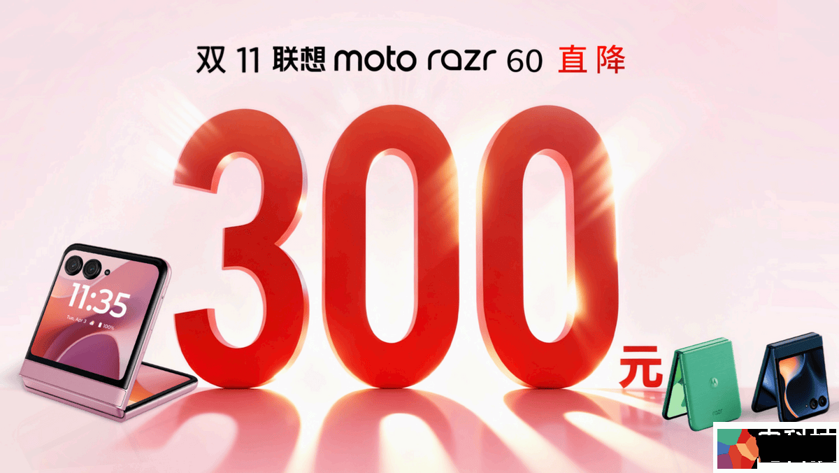 另外,备受用户喜欢的联想moto razr 60系列斩获Q3国内小折叠线上市场销量TOP 1!恰逢双11,为回馈用户,联想moto razr 60系列直降300元,再叠加平台补贴和国补多重优惠,福利满满。