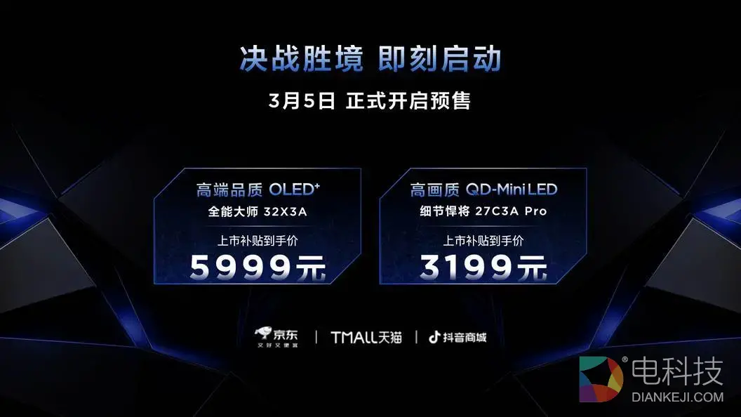 通往“胜境”的大门已经开启。“全能至臻”32X3A上市首发价5999元,“细节悍将”27C3A Pro上市首发价3199元,即日起在TCL官方商城及各大合作平台开启预售。本次发布不止于三款旗舰产品,而是一个完整的系列产品。除了作为标杆的X3A、C3A Pro和P2A Ultra,每个系列旗下都提供不同尺寸、不同规格配置的版本,无论需求选择如何、桌面空间多大、功能侧重有何不同,都能在TCL显示器中找到最适合的那一款。