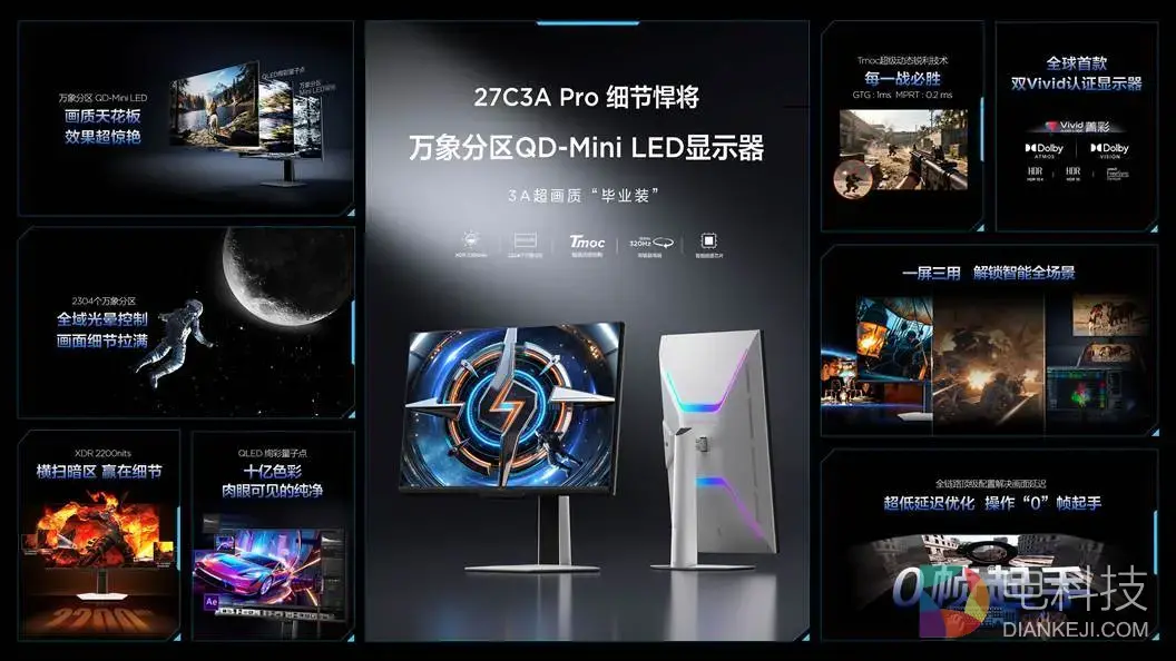 如果说OLED+ 展现了光在“纯粹画面”上的统治力,那么Mini LED技术则展现了光影控制在“细节还原”上的绝对权威。作为Mini LED的开创者与领导者,TCL将旗舰显示体验浓缩进桌面方寸之间,带来专为3A画质狂热者打造的“细节悍将”27C3A Pro。