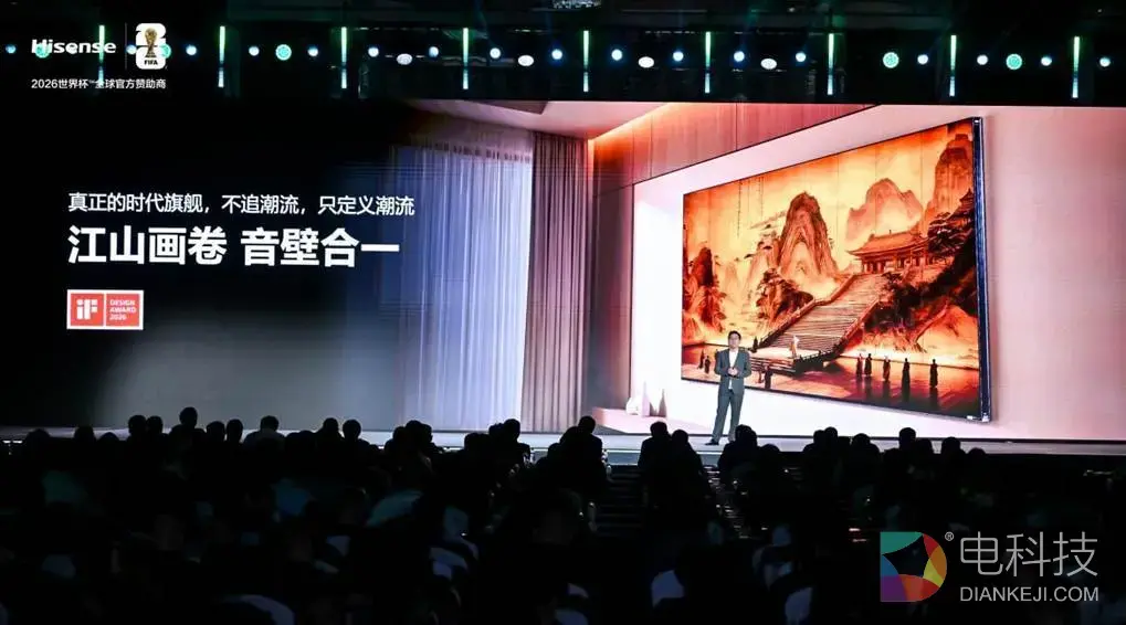 116 英寸版本更是全球最大的 RGB-Mini LED 电视,以 “江山画卷” 设计理念斩获德国 IF 2026 设计大奖,35mm 极致纤薄机身可无缝贴墙,完美融于各类家居风格。
