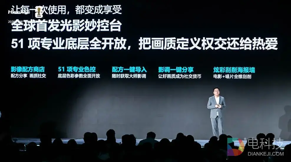 海信UX2026款搭载行业首创光影妙控台,内置大师级调色方案可一键复刻专业画质,更开放 51 项核心参数支持资深玩家精细调节,更有调色配方商店,未来将汇集导演与专业调色师的大师方案,支持一件复制,普通用户也能轻松调出专业级画面,解锁画质调试互动新体验。