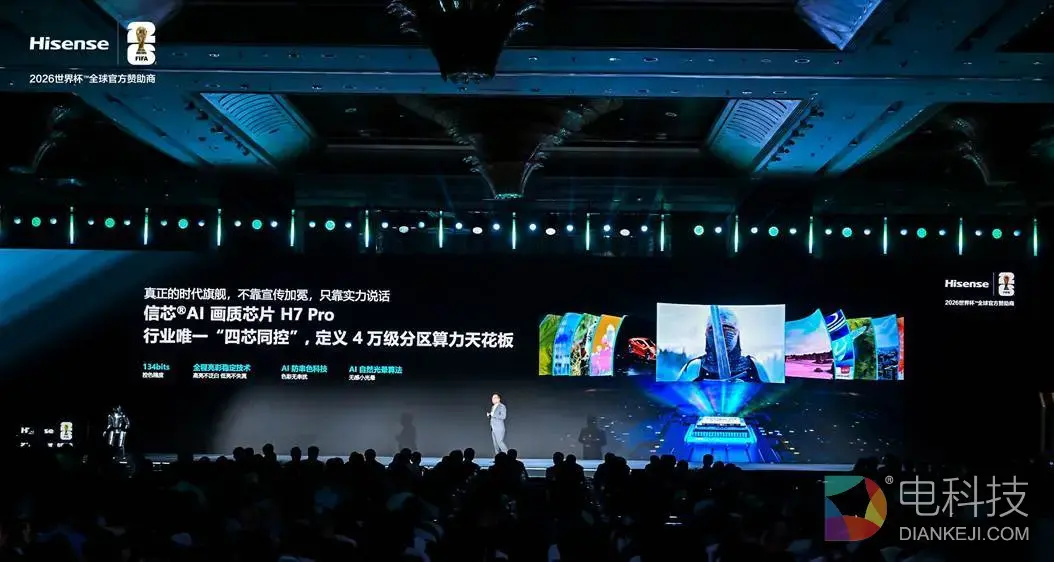 为完美驾驭巅峰光学系统,海信 UX2026 款搭载全行业唯一四芯同控信芯 AI 画质芯片 H7 Pro,以 134bits 行业最高控色精度,搭配AI防串色科技、AI 自然光晕算法,将 Mini LED电视明暗交界处的光晕消融至人眼难以感知的程度。相较QD-Mini LED、SQD-Mini LED 产品,实现 “暗场光晕消融” 与 “亮场色彩饱满” 双重优势,色彩表现力领先行业一代。