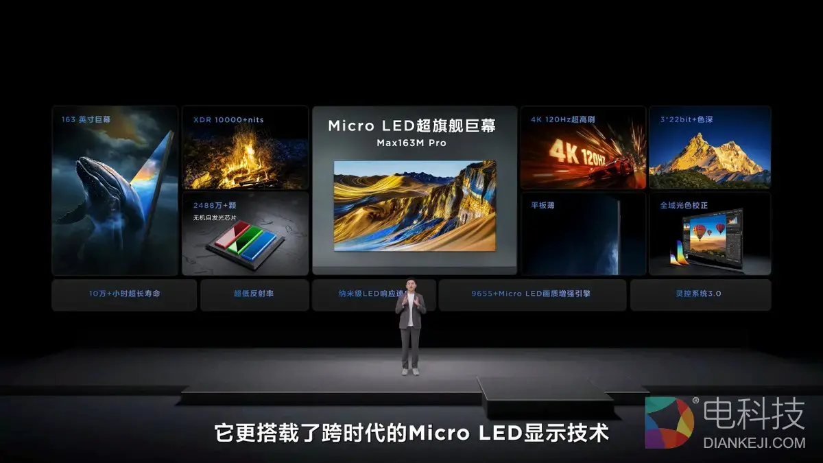 Max163M Pro搭载了2488万多颗无机自发光芯片,实现真4K分辨率与像素级独立控光