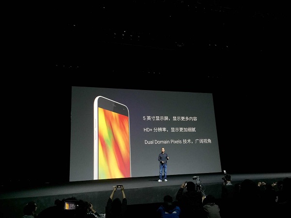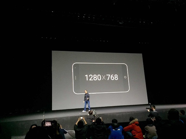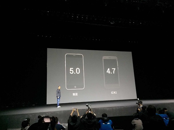 发布会的主角,魅蓝手机新品亮相,除了和魅蓝Note一样保持多彩外观之外,5寸显示屏采用了1280×768的奇葩分辨率。