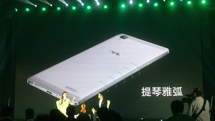 全新的OPPO R7采用全金属一体机身,最大的特色是设计灵感来自小提琴,正面采用2.5D弧面屏,背面设计为“提琴雅弧”,侧面还使用了流光侧边,手感舒适。